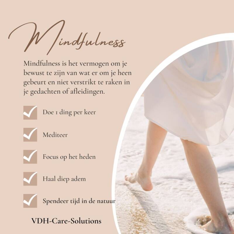 - Meditatie: Regelmatig even stilzitten en mediteren is een krachtige manier om mindfulness te beoefenen. Begin rustig met 5 minuten per dag en bouw het op.
